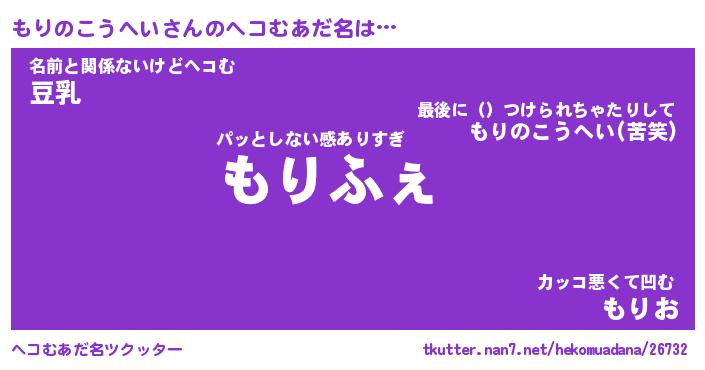 | 欧米人風あだ名 | 『マイケルもりのこうへい』 |