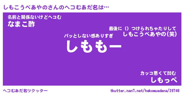 | 男性向けラノベタイトル風あだ名 | 『しもこうべあやのの憂鬱』 |
