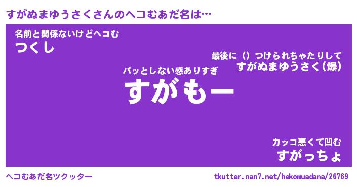 | 男性向けラノベタイトル風あだ名 | 『すがぬまゆうさくの憂鬱』 |