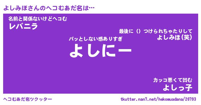 | 意味不明あだ名 | 『ペロリンよしみほ』『永久保存よしみほ』 |