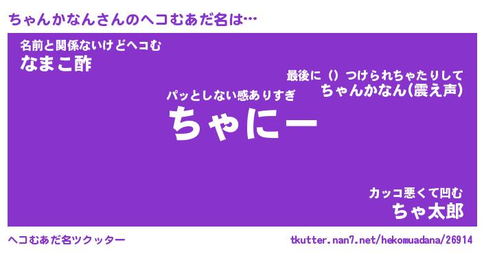 | 男性向けラノベタイトル風あだ名 | 『ちゃんかなんの憂鬱』 |