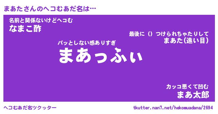 | ヒーロー風カッコイイあだ名 | 『スーパーマアタ』『ウルトラまあたマン』 |