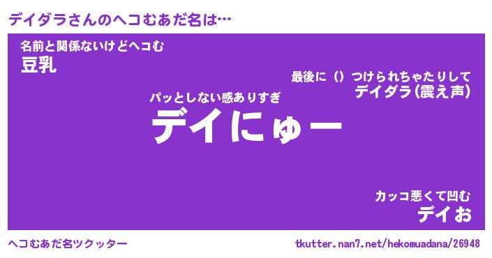 | ヒーロー風カッコイイあだ名 | 『スーパーデイダラ』『銀牙騎士デイ』 |