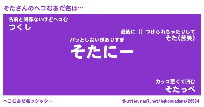 | ポケモン風あだ名 | 『ソタチュウ』『ソタダネ』『ヒソタ』 |