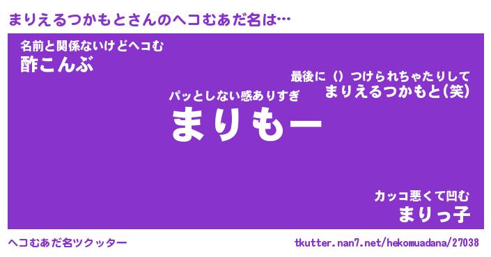 | 胡散臭い通販商品みたいなあだ名 | 『モテモテ間違いなし霊験あらたかなお札…その名も「まりえるつかもと」』 |