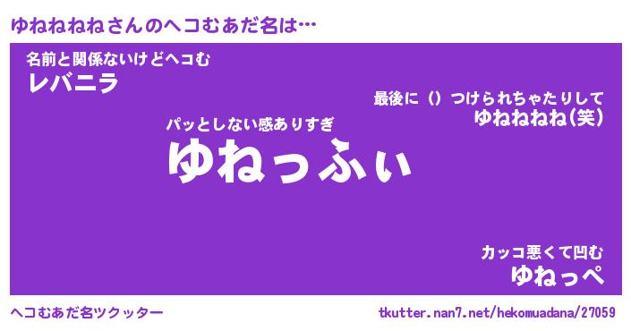 | ファンタジー風あだ名 | 『ユネフェル』『エターナルユネネネネー』 |
