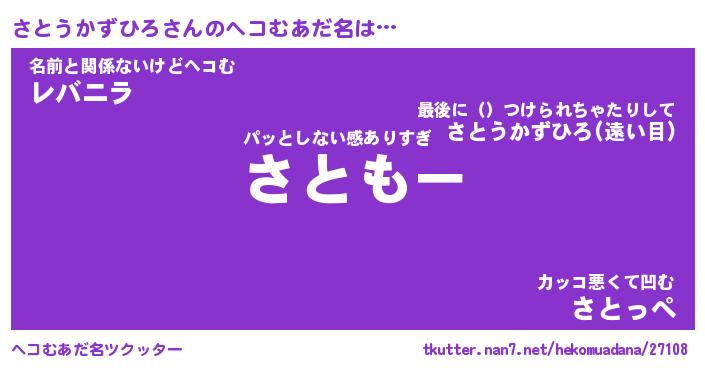 | 恥ずかしいあだ名 | 『プリティーさとうかずひろ』『さとちん』 |