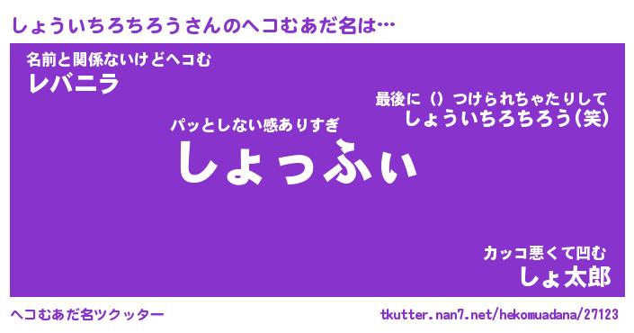 | 欧米人風あだ名 | 『マイケルしょういちろちろう』 |