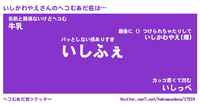 | ヒーロー風カッコイイあだ名 | 『スーパーイシカワヤエ』『魔戒騎士イシ』 |