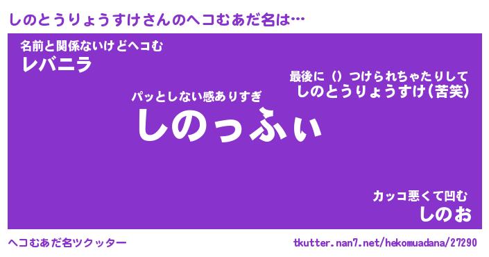| ヒーロー風カッコイイあだ名 | 『スーパーシノトウリョウスケ』 |