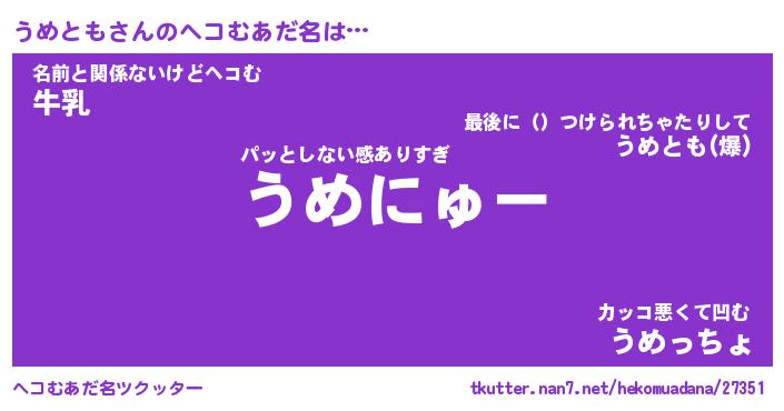| 意味不明あだ名 | 『ペロリンうめとも』『永久保存うめとも』 |