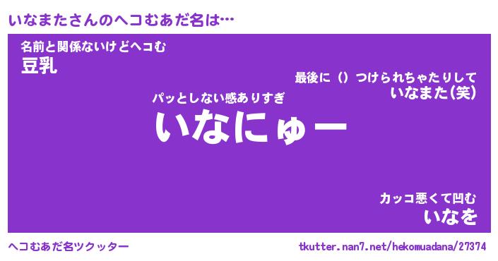 | 男性向けラノベタイトル風あだ名 | 『いなまたの憂鬱』 |