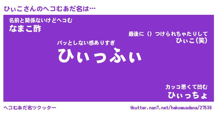 | ファンタジー風あだ名 | 『ヒィフェル』『エターナルヒィコー』 |