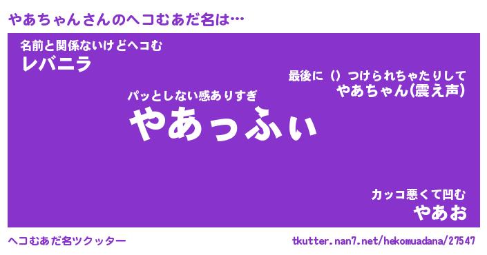 | 2回繰り返すあだ名 | 『やあやあ』『ややああ』『ねちねち』 |