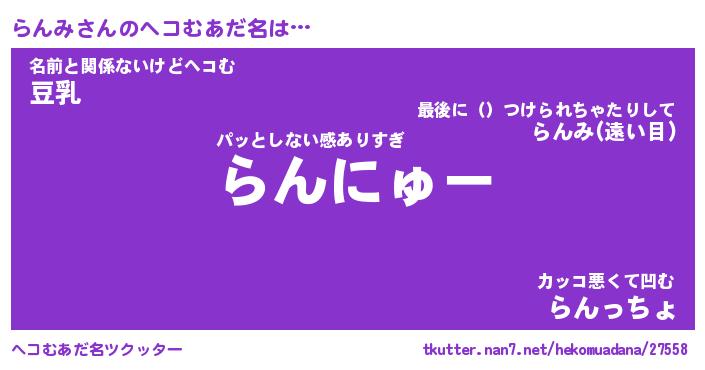 | 意味不明あだ名 | 『ペロリンらんみ』『らんみフォーエバー』 |
