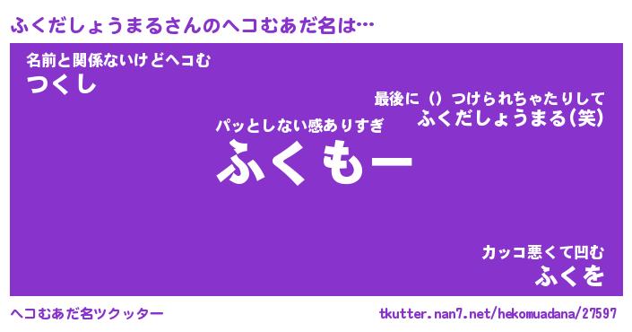 | 男性向けラノベタイトル風あだ名 | 『ふくだしょうまるの憂鬱』 |