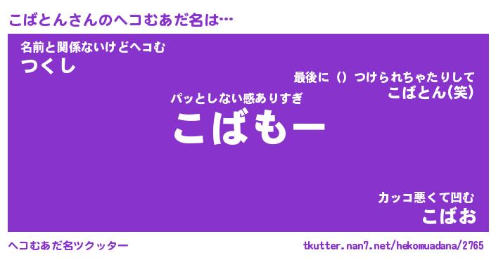 | 意味不明あだ名 | 『ペロリンこばとん』『永久保存こばとん』 |