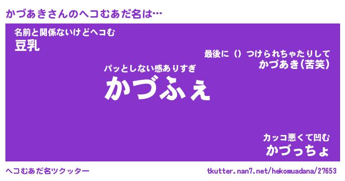 | 2回繰り返すあだ名 | 『かづかづ』『かかづづ』『おらおら』 |