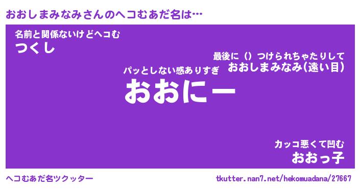 | 胡散臭い通販商品みたいなあだ名 | 『億万長者になれるブレスレット…その名も「おおしまみなみ」』 |