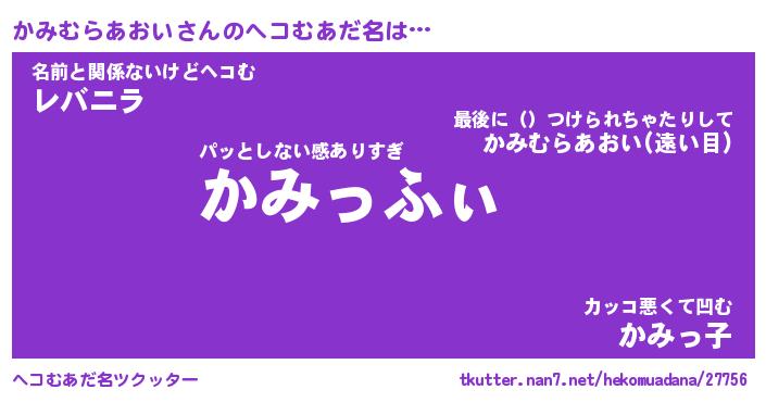 | 伝説のあだ名 | 『封印されしスナイパーかみむらあおい』 |