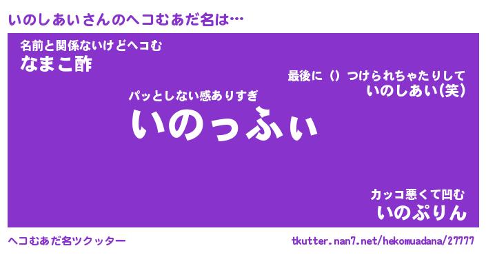 | 男性向けラノベタイトル風あだ名 | 『いのしあいの憂鬱』 |