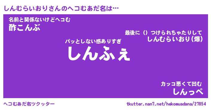 | 男性向けラノベタイトル風あだ名 | 『しんむらいおりの憂鬱』 |