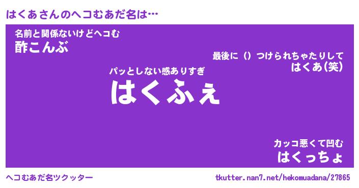 | 意味不明あだ名 | 『ペロリンはくあ』『はくあフォーエバー』 |
