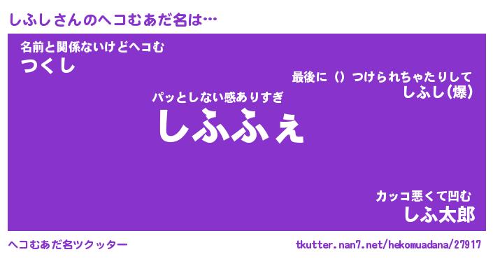 | ヒーロー風カッコイイあだ名 | 『スーパーシフシ』『ウルトラしふしマン』 |