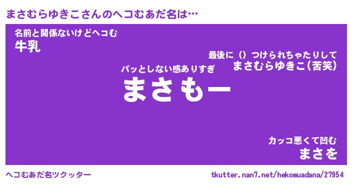 | 恥ずかしいあだ名 | 『プリティーまさむらゆきこ』『まさちん』 |
