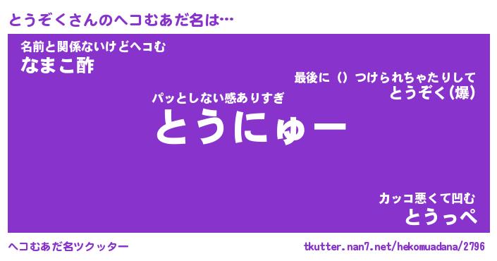 | ポケモン風あだ名 | 『トウチュウ』『トウゾダネ』 |