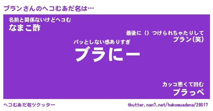 | ポケモン風あだ名 | 『ブラチュウ』『ブランダネ』 |