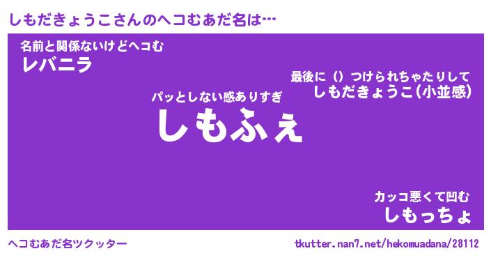 | ポケモン風あだ名 | 『シモチュウ』『シモダダネ』 |