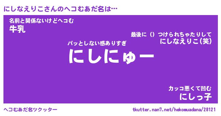 | ポケモン風あだ名 | 『ニシチュウ』『ニシナダネ』 |