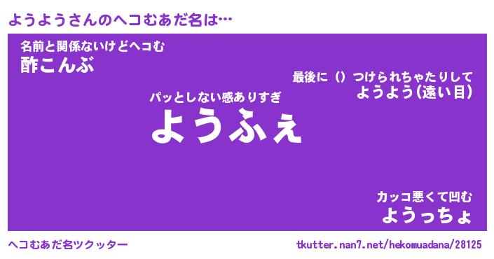 | ファンタジー風あだ名 | 『ヨウフェル』『エターナルヨウヨウー』 |