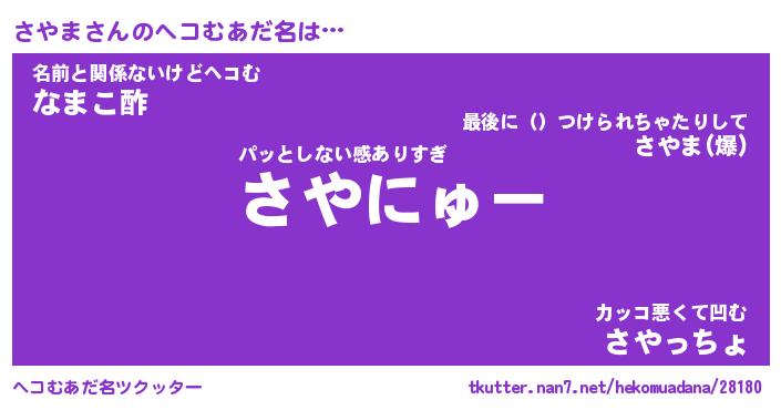 | ファンタジー風あだ名 | 『サヤフェル』『エターナルサヤマー』 |