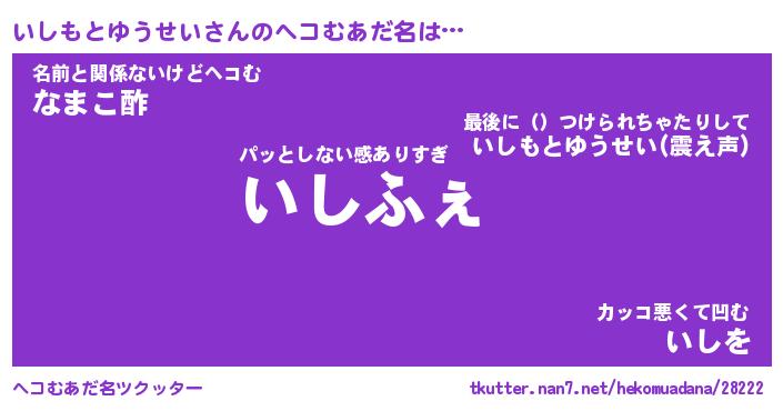 | 意味不明あだ名 | 『ペロリンいしもとゆうせい』 |