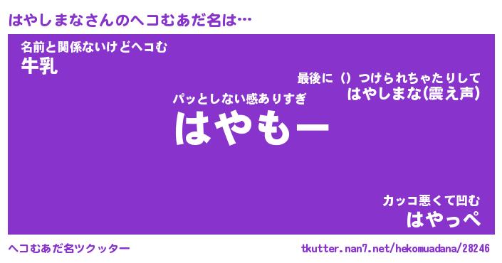 | 胡散臭い通販商品みたいなあだ名 | 『必ず成功する霊験あらたかなお札…その名も「はやしまな」』 |