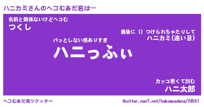 | ファンタジー風あだ名 | 『ハニフェル』『エターナルハニカミー』 |