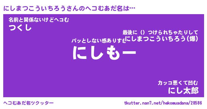 | 女子向けラノベタイトル風あだ名 | 『にしまつこういちろう姫と円卓の騎士』 |