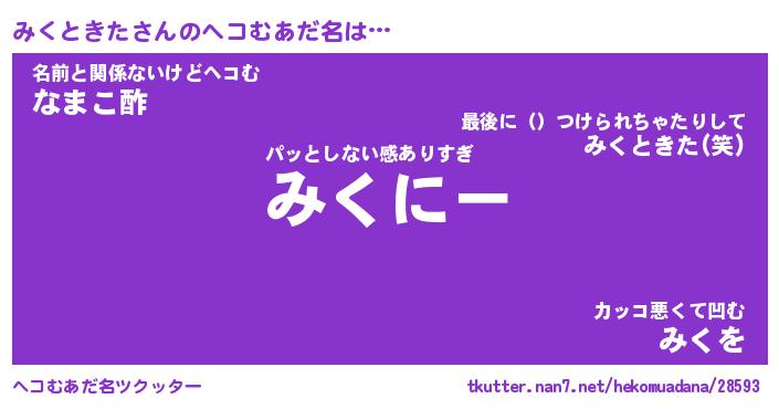 | ヒーロー風カッコイイあだ名 | 『スーパーミクトキタ』『銀牙騎士ミク』 |