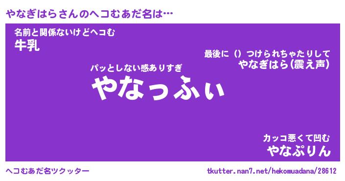 | ファンタジー風あだ名 | 『ヤナフェル』『エターナルヤナギハラー』 |