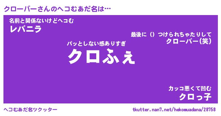 | ファンタジー風あだ名 | 『クロフェル』『エターナルクローバーー』 |
