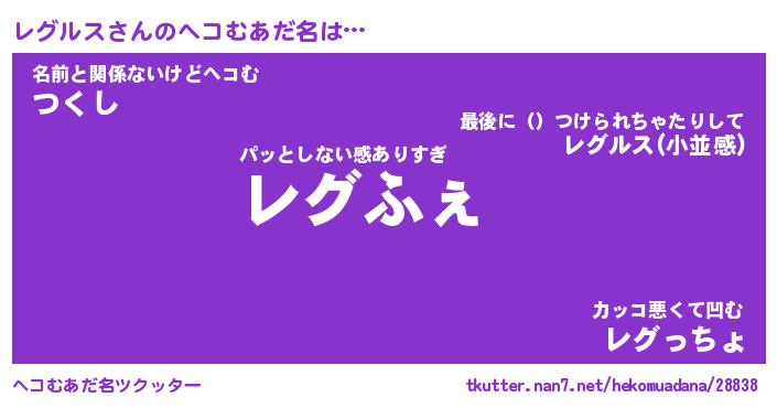 | 意味不明あだ名 | 『ペロリンレグルス』『永久保存レグルス』 |