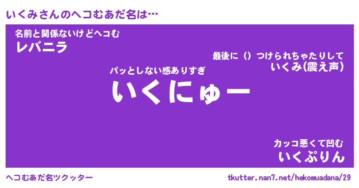 | ポケモン風あだ名 | 『イクチュウ』『イクミダネ』 |