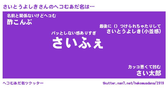| 意味不明あだ名 | 『ペロリンさいとうよしき』 |