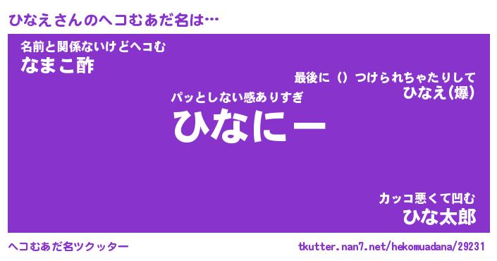 | ヒーロー風カッコイイあだ名 | 『スーパーヒナエ』『ウルトラひなえマン』 |
