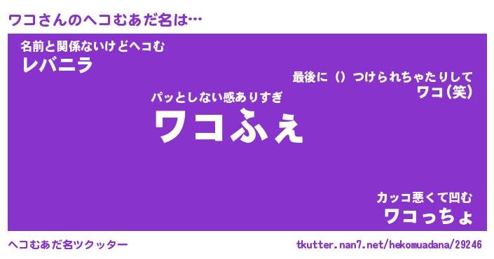 | ポケモン風あだ名 | 『ワコチュウ』『ワコダネ』『ヒワコ』 |