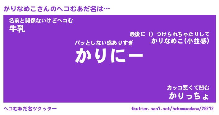 | ヒーロー風カッコイイあだ名 | 『スーパーカリナメコ』『暗黒騎士カリ』 |