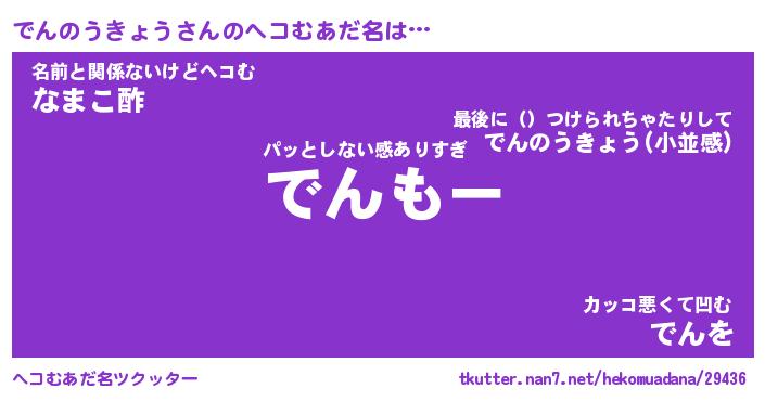 | 可愛いあだ名 | 『でんでん』『でんちー』 |