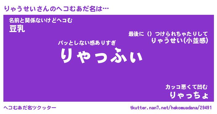 | 男性向けラノベタイトル風あだ名 | 『りゃうせいの憂鬱』 |